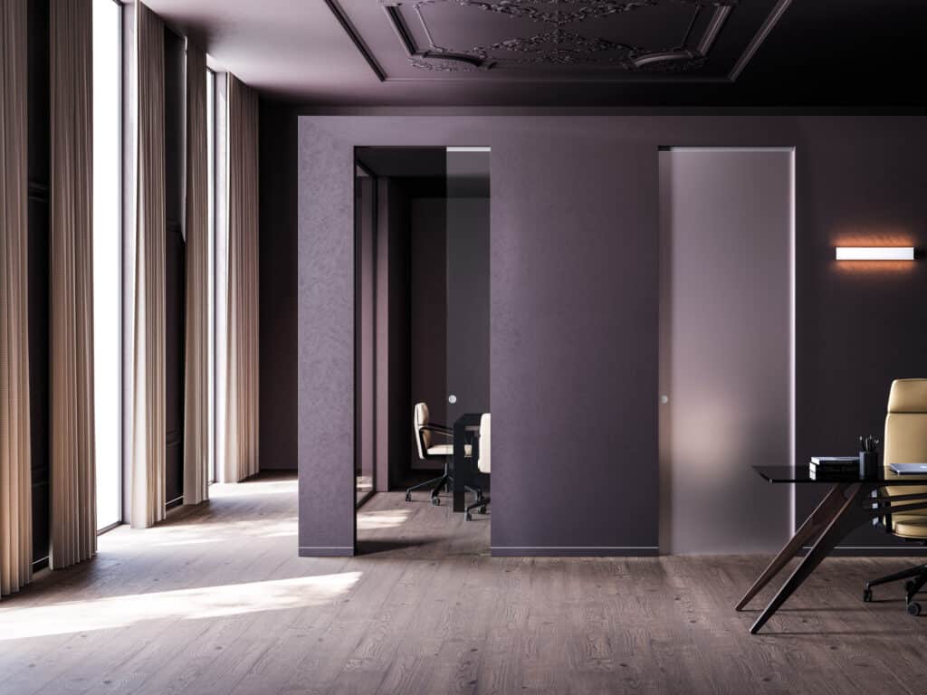 Pokud pracujete na home office, oceníte ve své pracovně jejich tichý a hladký mechanismus, který zajišťuje klid při práci. V takovém případě ale volte rovnou akustické dveře, které nabízí zvukovou izolaci až 38 dB.