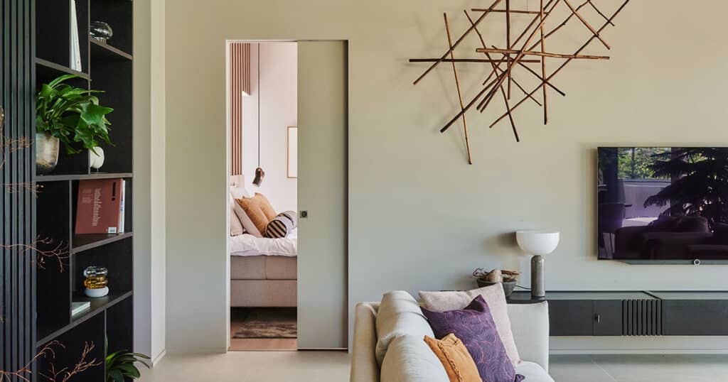 Dřevěné posuvné dveře jsou k dispozici v laminu, v lakovaném provedení, v surovém ořechu Tanganika, s esencí dřeva ze surového dřeva nebo s přetíratelným základním nátěrem PRIMER.