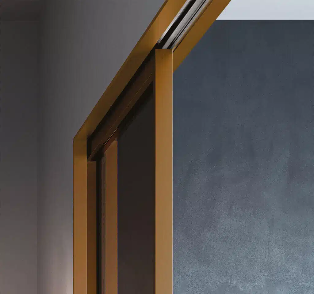 Obkladové profily Mimesi jsou určené pro bezobložkové pouzdra, když chcete vizuálně zvýraznit a jemně ohraničit oblast průchodu. Jde o tenký profil z eloxovaného hliníku, který nabízíme v barvách dveřního rámu sklo-hliníkových dveří: bronz, Champagne, tobacco, bílá RAL 9010. Profily MIMESI lze ale vkusně kombinovat i s jinými typy posuvných dveří.
