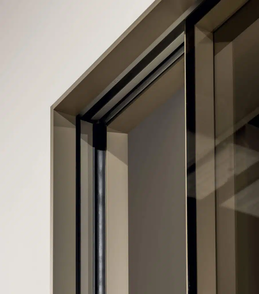 Dveře s hliníkovým obvodovým rámem a dvěma skly pro pouzdra z řady ECLISSE Syntesis.