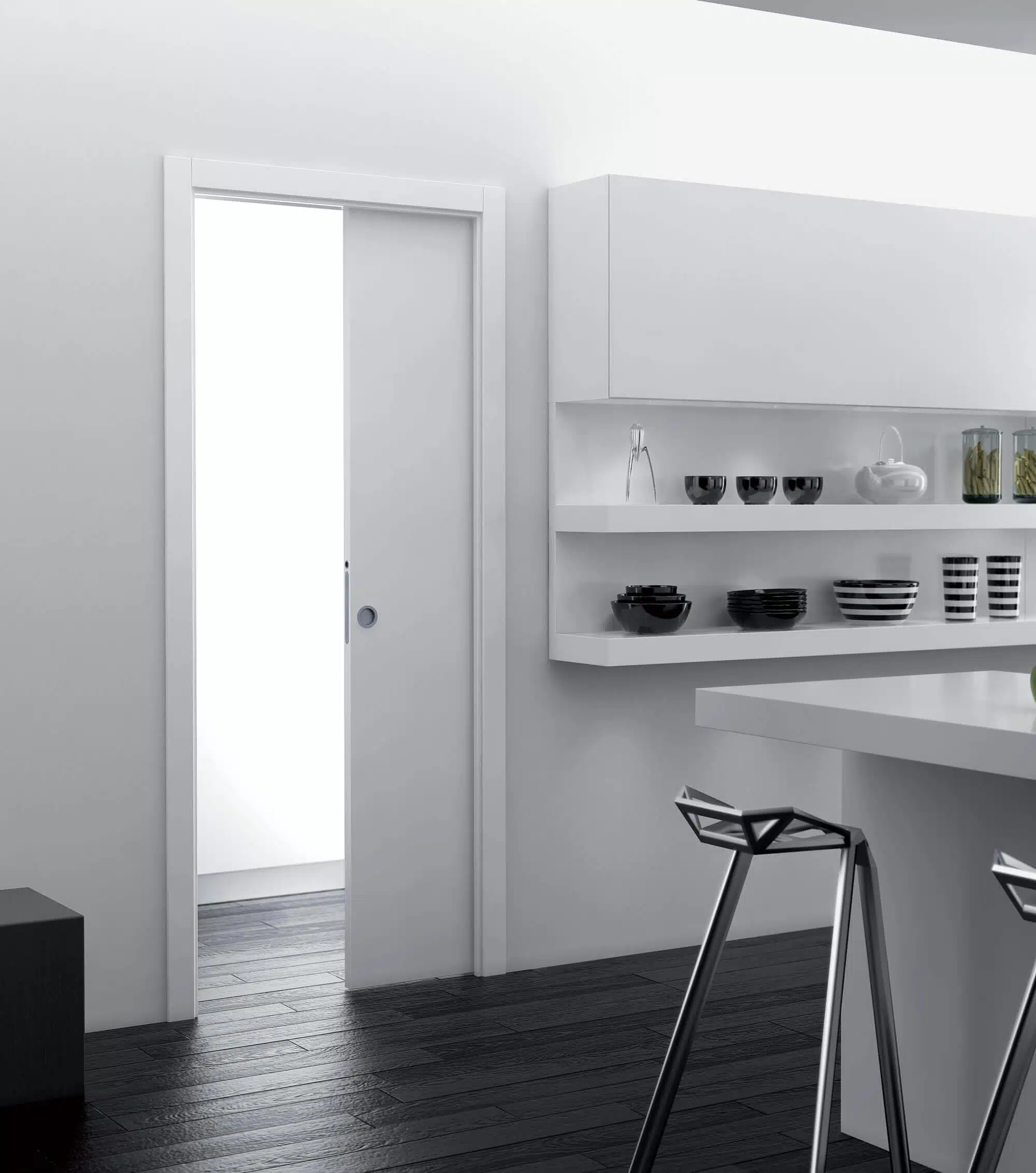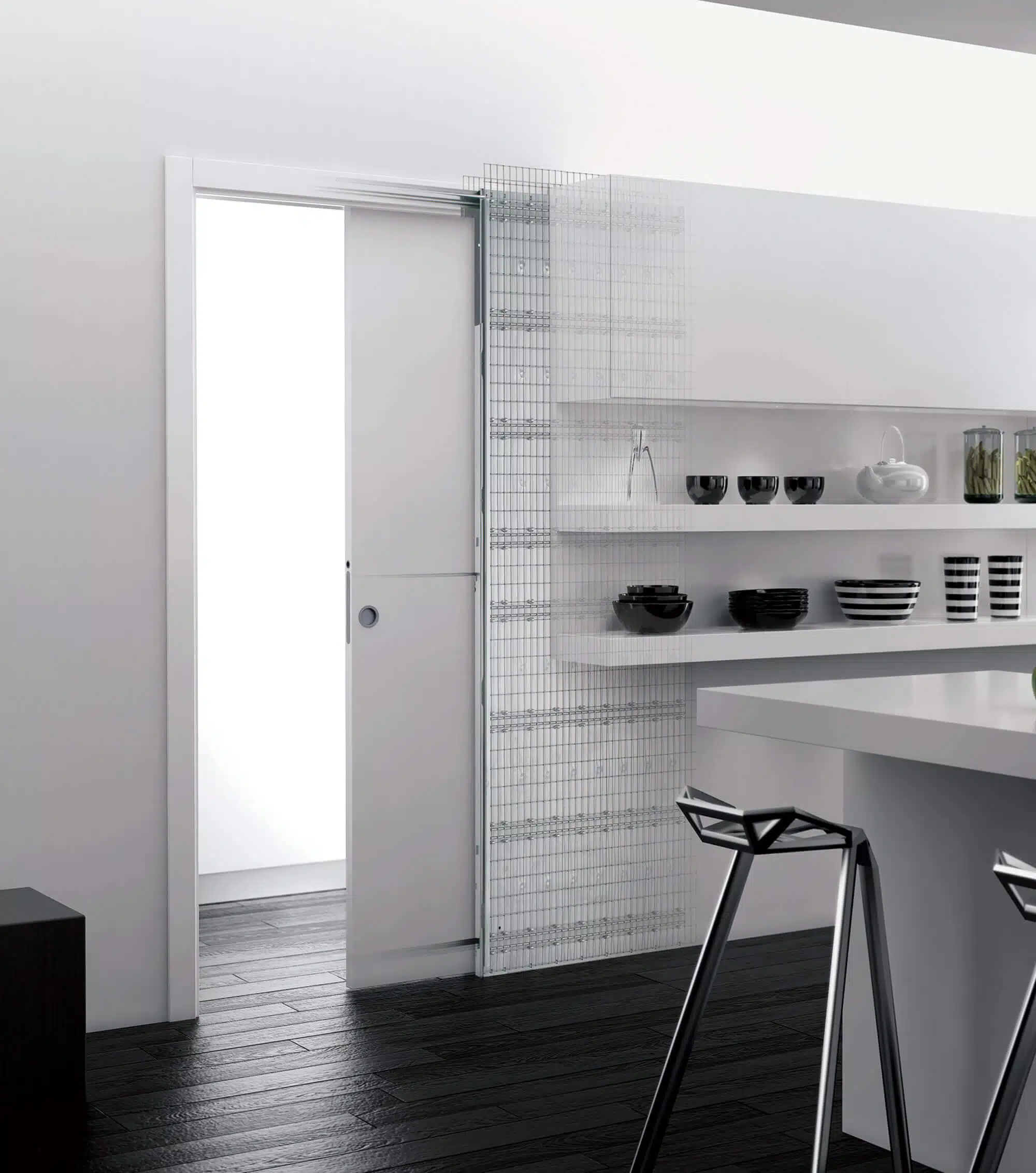 Zatímco běžná pouzdra nejsou konstruována na vrtání či kotvení, ECLISSE Ewoluto má pevnostní výztuhy navržené právě proto, aby bylo možné na jeho povrch bezpečně instalovat skříně, police, regály, závěsné skříňky, ale i další vybavení. Stěna s posuvnými dveřmi tak konečně přestává být problematickým místem v interiéru.