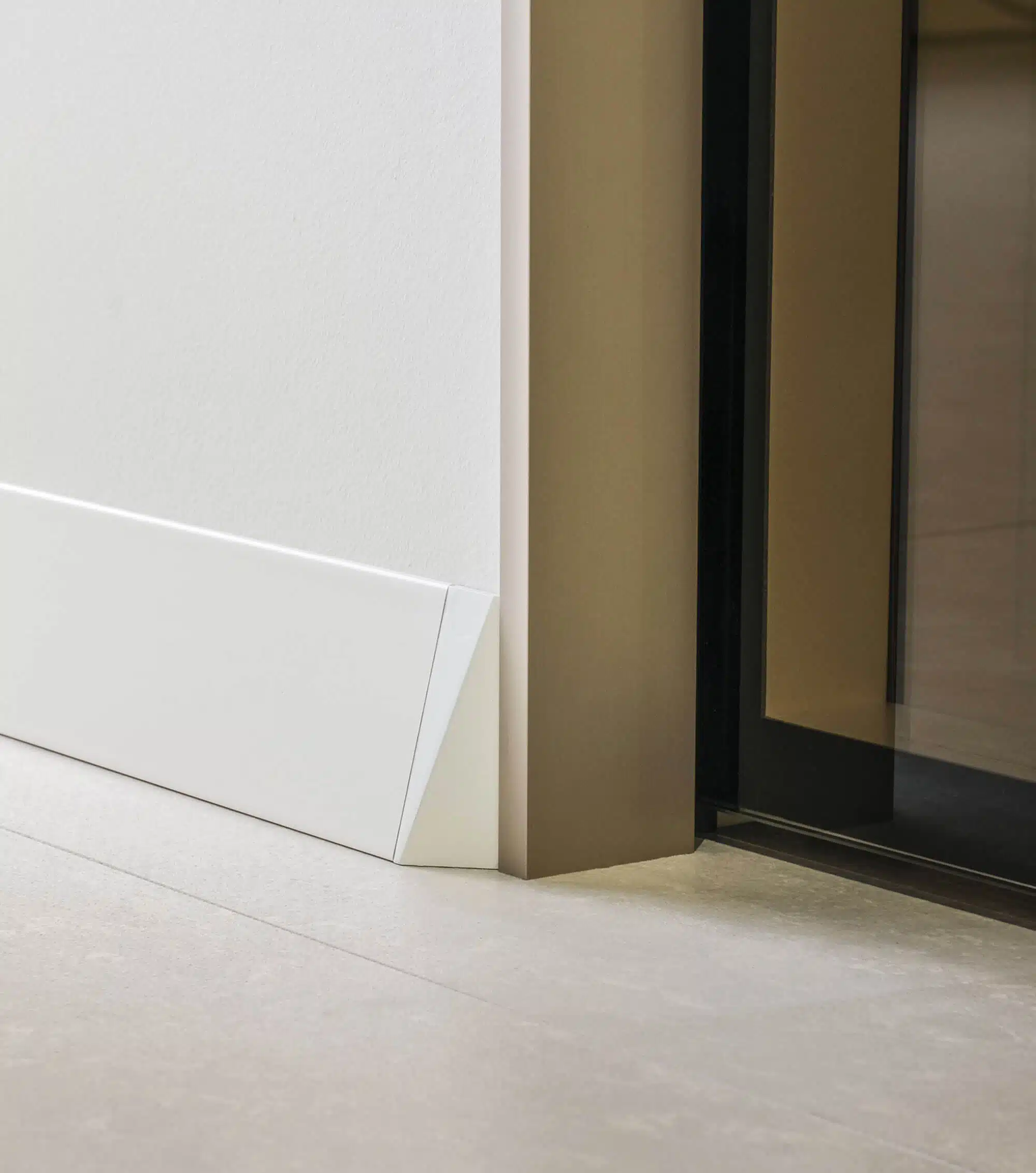 Nový způsob pojetí soklové lišty, která z čistě funkčního prvku přechází v charakteristický a dekorativní detail a vytváří jedinečnou iluzi efektu zapuštěného soklu do zdi.